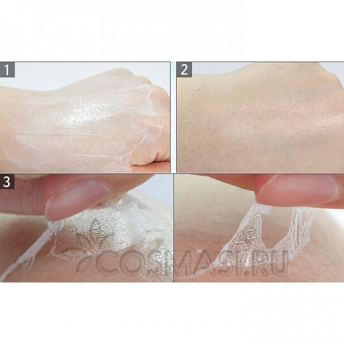 Способ применения: На очищенную от косметики кожу лица нанести маску и равномерно распределить, избегая области вокруг глаз и губ. Примерно через 30 минут, когда маска из белой станет прозрачной и превратится в пленку, аккуратно снять, начиная от подбородка.